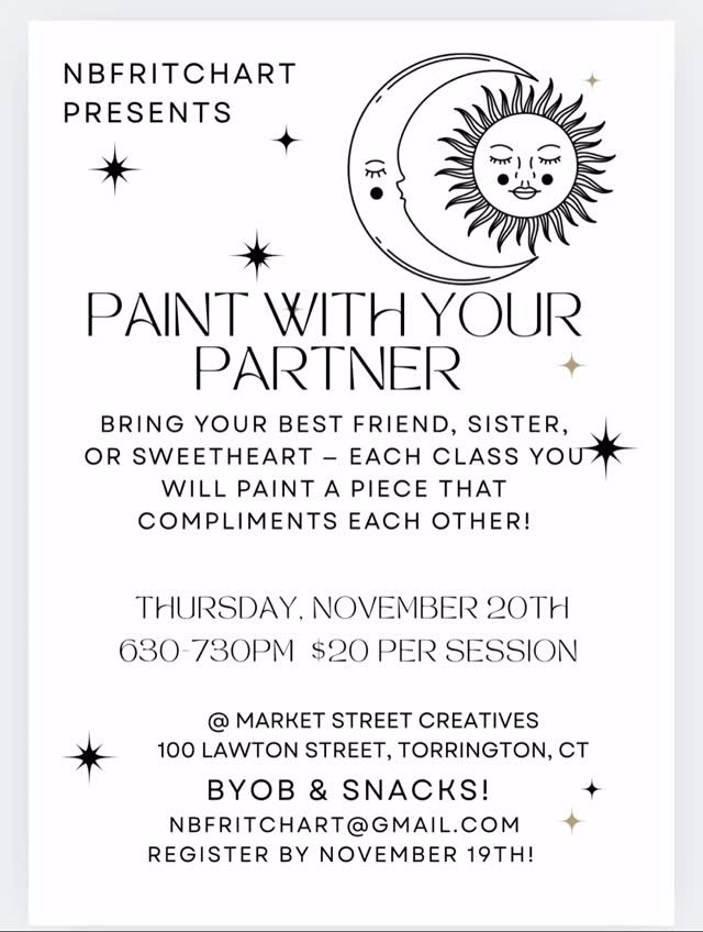 100 Lawton Street, Torrington CTYou will paint a piece that compliments each other! HINT: Suns and Moons!